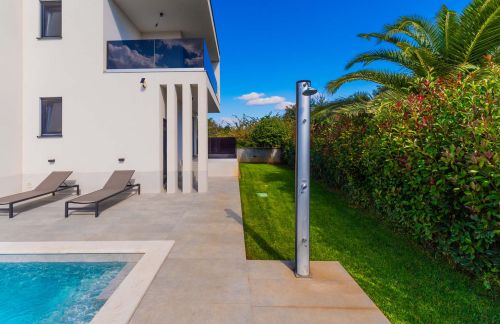 Just a few minutes from the sea, Villa Andris invites you to unwind — with a private pool, Finnish sauna, a safe in every bedroom, and a spacious garden that invites you to breathe deeply and recharge.